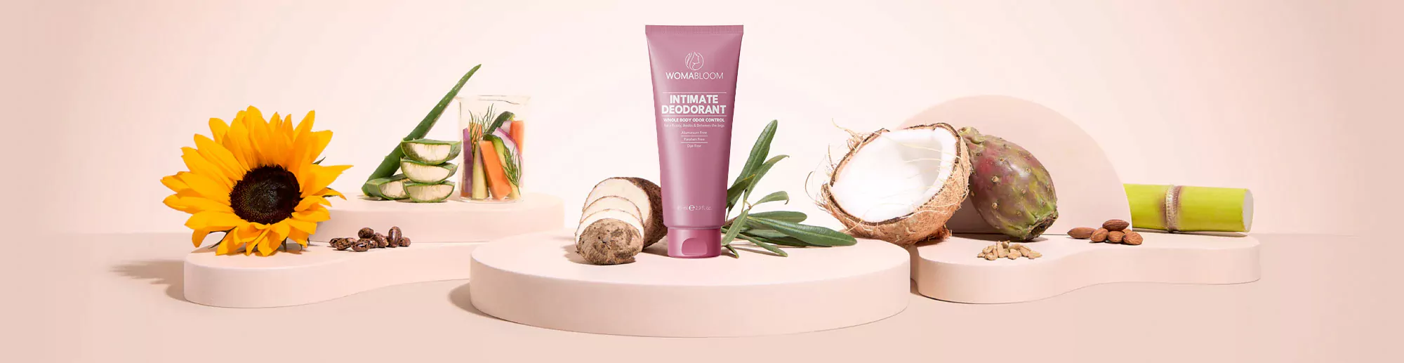 Naše produkty sú navrhnuté tak, aby sa používali spoločne, a pomohli vám dosiahnuť vaše ciele v oblasti wellness! Womabloom Intimate Dezodorant je krémový dezodorant určený na blokovanie vonkajšieho zápachu na povrchu pokožky. Je možné ho používať ako súčasť kompletnej intímnej starostlivosti.