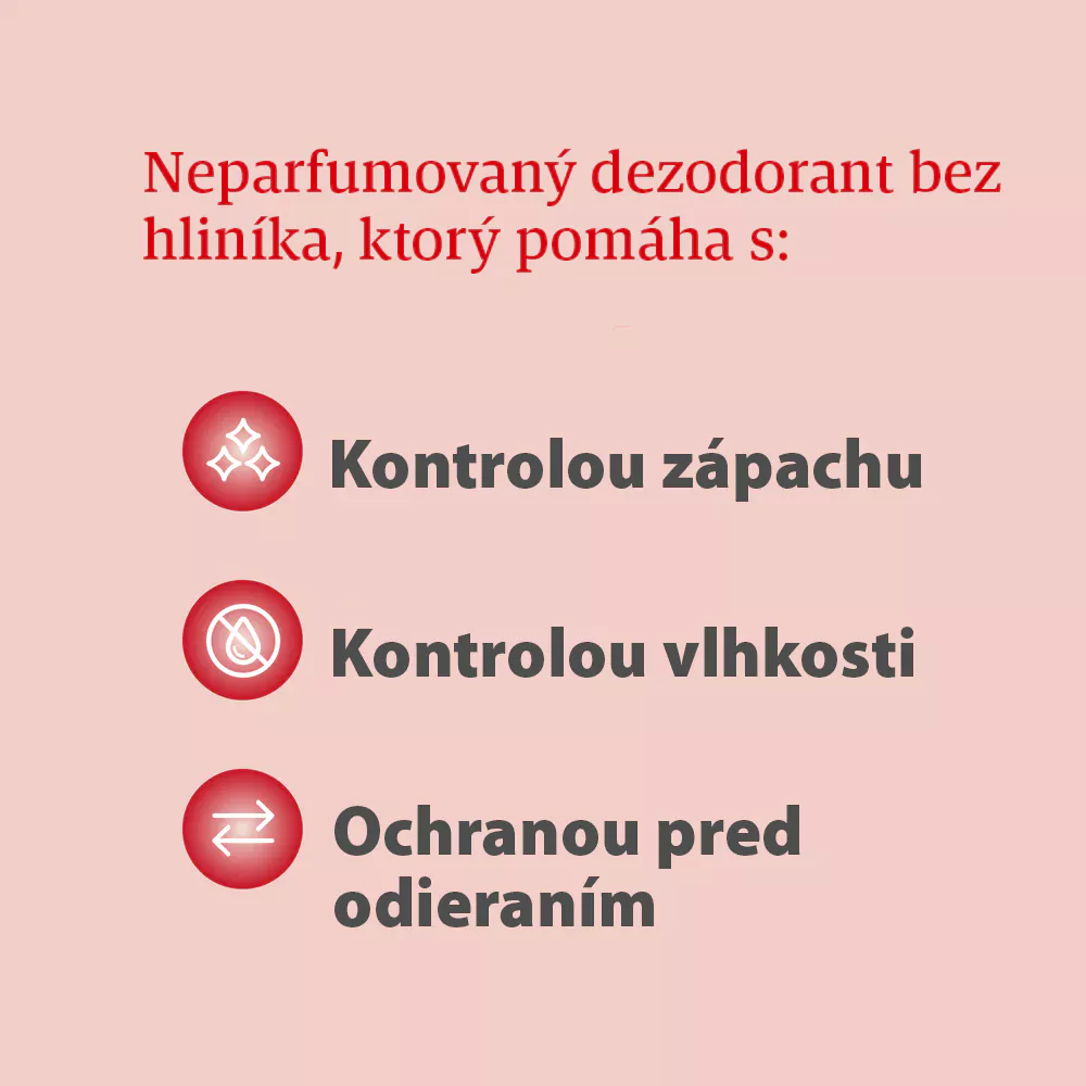 Neparfémovaný dezodorant bez obsahu hliníka, ktorý pomáha s: